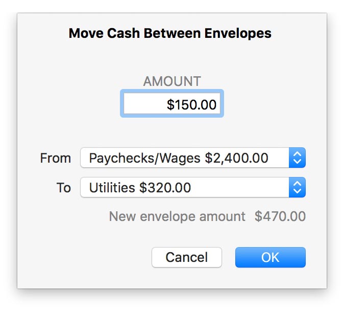 1. Move cash between envelopes: