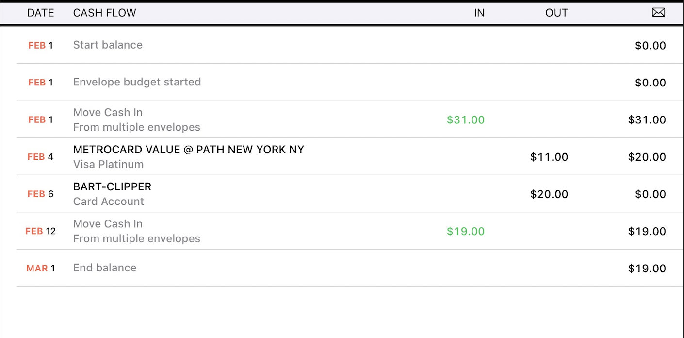 Since the transactions in your accounts automatically adjust the cash in your envelopes, make an extra effort to keep accurate records! Making changes to transactions in the past can affect your envelope cash flow in ways you might not expect.