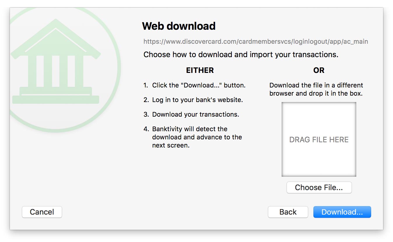 Downloading with Banktivity's built-in browser: