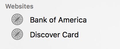 If you previously set up an account manually, and now would like to use Banktivity's built-in browser to download transactions into the account, all you need to do is add a URL to the account settings. In the sidebar, double-click the account you want to modify, and the account inspector will pop up next to the account. Enter your financial institution's web address in the "Website" field. Try to be as specific as possible (i.e. enter the address that will take you directly to your account login) so as to avoid unnecessary browsing when you update your accounts. You may also enter a label for the website in the "Bank" field (if you don't, the account name will be displayed instead). When you are done, click "Save" to close the account inspector. A shortcut to the web page you entered will be added to the "Websites" section of the sidebar: