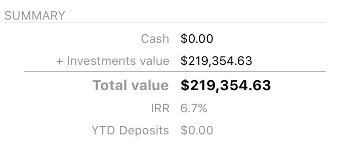 The account summary to the right of the bar chart displays the value of unallocated cash in the account, the market value of all holdings in the account, and the total value. Below that is the internal rate of return (IRR), an annualized rate equal to the interest rate on a bank account that would give you the same total return on your investment. Finally, year-to-date (YTD) deposits shows the total value of all contributions made to the account during the current year, through cash deposits, cash transfers, or security purchases that use "Transfer" distribution.