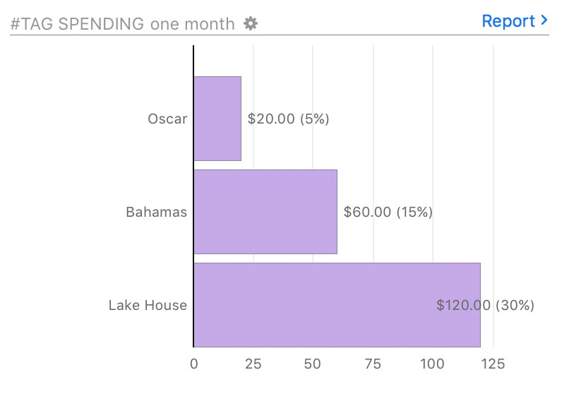 Click on any bar to see a Tag Detail report for the corresponding tag, or click "Report" at the top right to view a Tag Spending report for the current year.