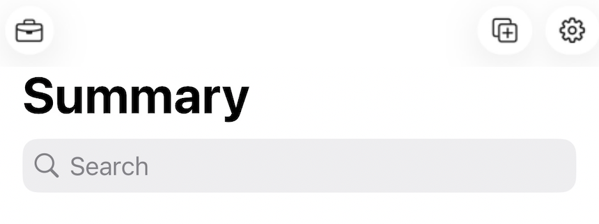 On iPhone, the toolbar is nearly identical to the iPad but the search is hidden by default to save space, simply press your finger down onto the summary and swipe slowly toward to bottom until you reveal the search bar: