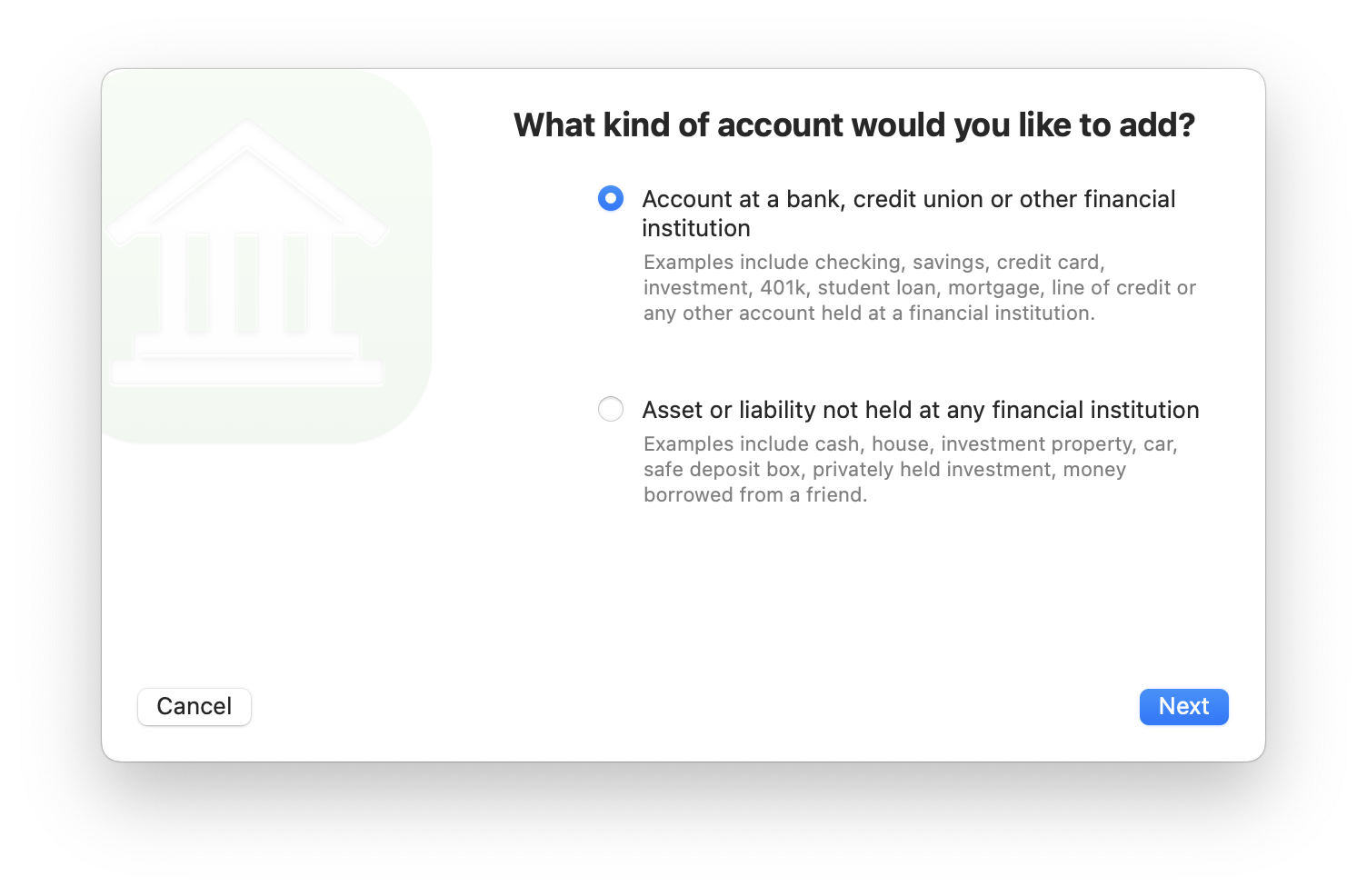 One final screen will notify you that setup is complete. If you just finished adding a new account, Banktivity will give you the option to set up another.