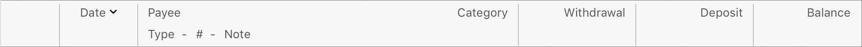 To sort the register, click a column heading; the transactions will automatically sort according to the values in that column. For example, if you want to sort your transactions chronologically, click "Date." Click the column header a second time to reverse the direction of the sort. Sorting can also be controlled by using the View > Sort Transactions By menu.
